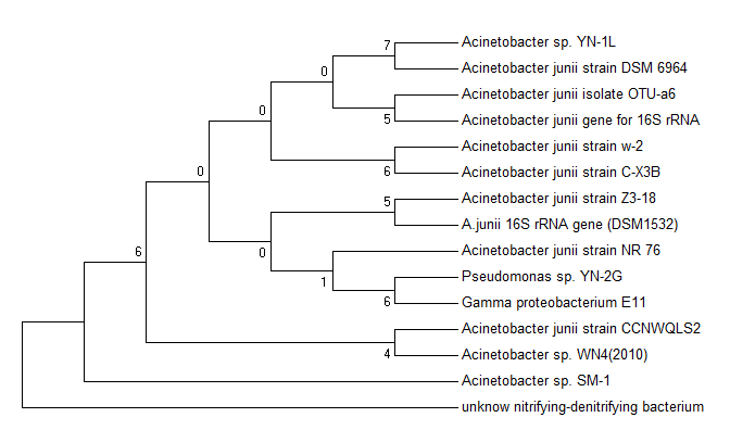 利用MEGA5.2对一株细菌16SrDNA构建系统进化树,结果发现与BLASTN结果差的好远