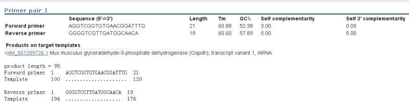 如题,已知内参基因GAPDH,genebank ID:NM 008084.2