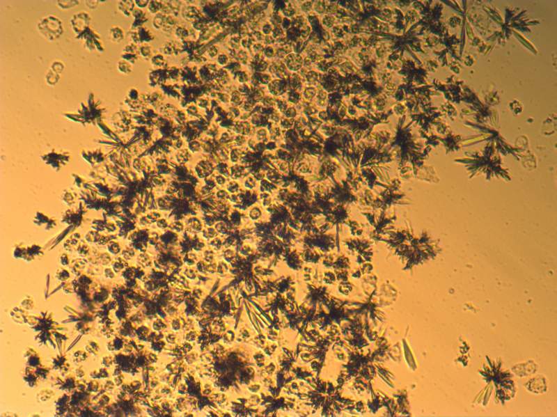 感觉不像是染菌,像是什么结晶的沉淀,先做做看结果怎么样吧,要是染菌的话结果会有表现的