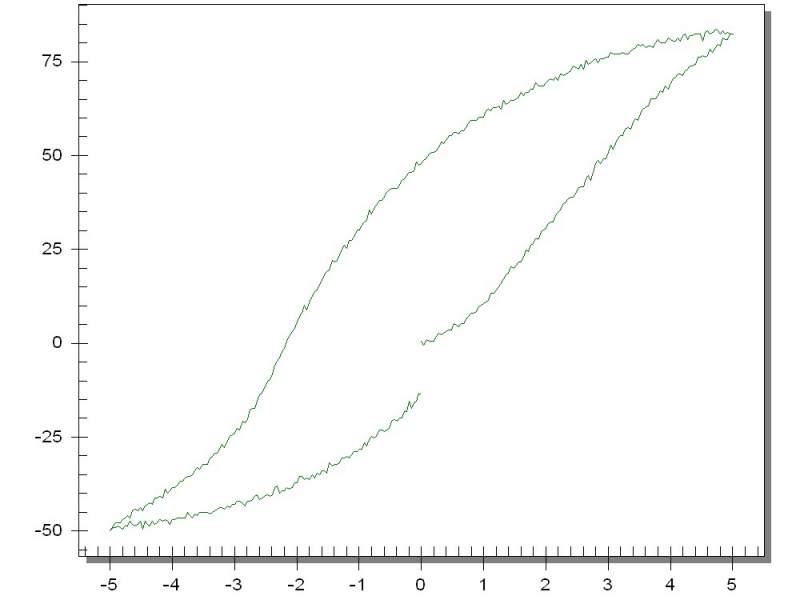 sol-gel方法制备pzt薄膜,测出电滞回线在Y轴方向上下不对称,如图看到,回线顶部达到75而底部就只有50.顺便请问一下,材料的漏电流过大是因为什么?跟晶粒的大小会有关系吗?