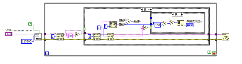 各位大神,请看看,以下是我的程序框图,用来读取串口数据,串口每秒80字节,但是程序运行到一定时间(时间随机),就会自己死机,死机时高亮显示,发现最开始的visa配置显示“未执行”,所以一直循环,读不出数,这是为什么呀?????????????????????? 捕获.PNG |