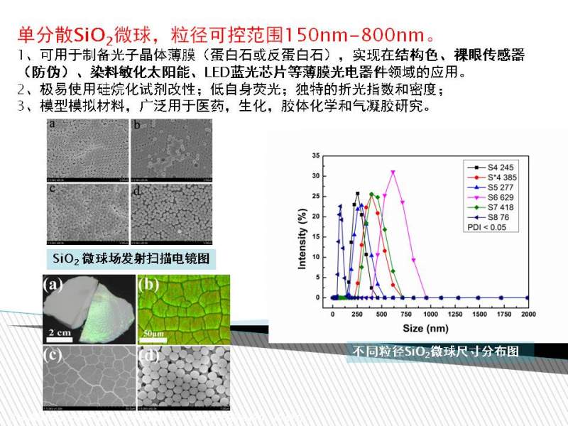 这里有单分散二氧化硅(SiO2)微珠,粒径150nm-800nm