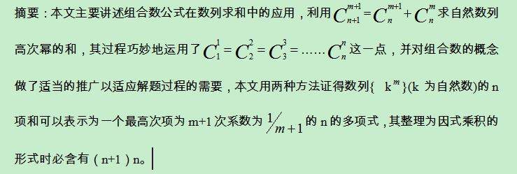 组合数公式在自然数高次幂数列求和中的应用 已有6人参与
