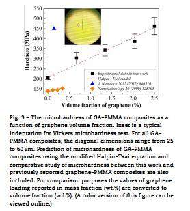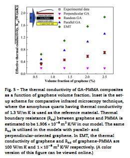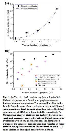Advanced multifunctional graphene aerogel Poly (methyl methacrylate) composites: Experiments and modeling,Carbon 81 (2015) 396-404. 影响因子:6.16 摘要:In this work, graphene aerogel (GA) poly (methyl methacrylate) (PMMA) composites are first developed by backfilling PMMA into the pores of the GAs, providing uniform distribution of multi layer reduced graphene oxide (m rGO) sheets in the PMMA matrix. Electrical, mechanical and thermal properties of the as prepared GA PMMA composites are investigated by two probe, microindentation and comparative infrared techniques respectively. As graphene loadings increase from 0.67 to 2.50 vol.%, the composites exhibit significant increases in electrical conductivity (0.160–0.859 S/m), microhardness (303.6 to462.5 MPa) and thermal conductivity (0.35to 0.70W/mK) from that of pure PMMA as well as graphene PMMA composites prepared by traditional dispersion methods. Thermal boundary resistance between graphene and PMMA is estimated to be 1.906. 108m2 K/W by an off lattice Monte Carlo algorithmthat takes into account the complexmorphology, size distribution and dispersion of m rGO sheets. 中文翻译摘要:在本研究中,通过将PMMA回填到GAs的孔中制备了石墨烯气凝胶(GA)-聚酯(甲基丙烯酸甲酯)(PMMA)复合材料,在PMMA基体中均匀分布多层的还原氧化石墨烯片(m-rGO)。通过二探针法,微压测试和红外比较方法测试了制备的GA-PMMA复合材料的电学、机械和热学性能。当石墨烯的载荷由0.67vol%增加到2.5vol%,复合材料的电导率(0.160-0.895S/m)、显微硬度(303.6-462.5MPa)和热导率(0.35-0.70W/mK)呈现显著的增加, 用非晶格蒙特卡罗算法,考虑到复杂的形态、尺寸分布和m-rGO片分布,石墨烯和PMMA之间的热边界阻力是1.906×10-8m2K/W。想获得更多资源可点击链接http://www.tjdrfk.com/news/asedfrgbvc.html 图片5.jpg 图片1.jpg 图片2.jpg 图片3.jpg 图片4.jpg |