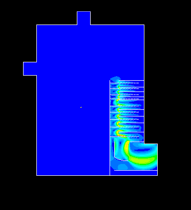 我初学FLUENT 结果在建立模型的过程中 将上边那个口定义为速度入口 加入速度0.87m/s 可是在模拟的过程中 却看不到气体由入口流入 如图