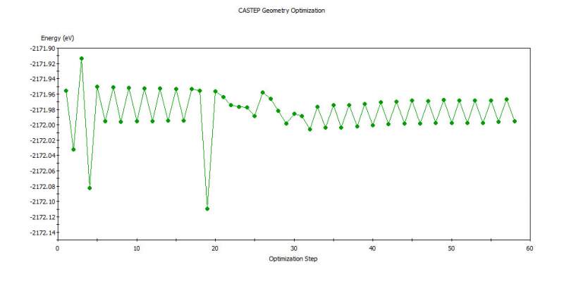 版主您好,非常感谢您的指点,我对这些参数的设置也进行了一些尝试,但是得到的结果都有一个倾向,就是能量值上下波动,没有规律,所以也不收敛,我想知道产生这样的现象有哪些特定的原因。感谢!下面是其中一个优化的能量变化图。http://image.keyan.cc/data/bcs/2 ... _1421038685_320.jpg NiCl2 cell Energies.jpg |
