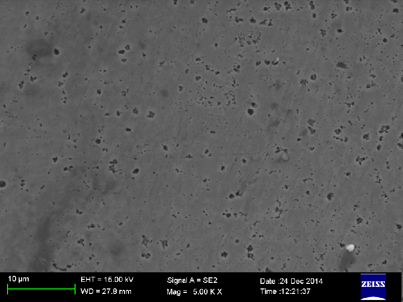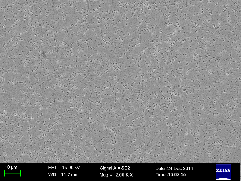 跟你的腐蚀液有关,你这2000倍,5000倍怎么都看不到晶粒?腐蚀太浅了!太浅之后就会有形似这些气孔间隙出现,电镜不是光镜,要腐蚀时间长一点!