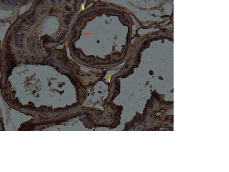 如附件中所示 是我做的正常小鼠前列腺组织的IHC切片 20倍放大 我用的是PI3K β抗体 如图中三个箭头处 我感觉红色箭头 处像是染上抗体 但是黄色箭头处不知道是什么 还请大侠不吝赐教 多谢啊 474 p110b lateral lobe 20.jpg |