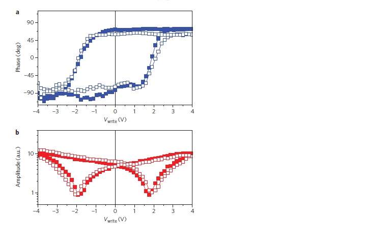 我用PFM测试了多晶薄膜的形貌、相位和振幅,其中相位和振幅的结果类似于一般铁电薄膜的回线,以及蝴蝶型的曲线,那么我可不可得出结论:该薄膜具有铁电特性,还是这个结果只能说明该薄膜发生了电极化,而且这种极化中的电偶极子一般是如何产生的?求铁电领域的大神解答,多谢! 示意图.jpg |