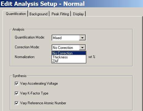 利用STEM对金属中第二相进行成分分析时,在EDX Quant Setup选项中Analysis的 Correction Mode(如图)中应该选哪一个才能得到正确的结果?