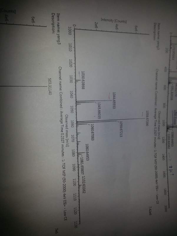 求MALDI TOF 质谱专家帮忙分析下谱图,万分感谢
