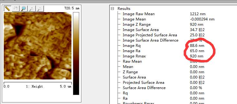 AFM粗糙度Rmax和数据输出图像纵轴值不符 已有1人参与