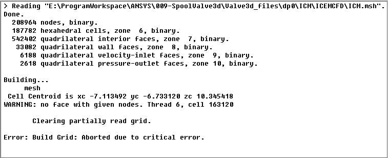 在workbench里面做的,icem划分的3D网格,网格质量检查也挺好的,但是fluent打开时就出现build grid 的致命错误,不能导入网格了。求大神看下什么错误,求指导。。thanks