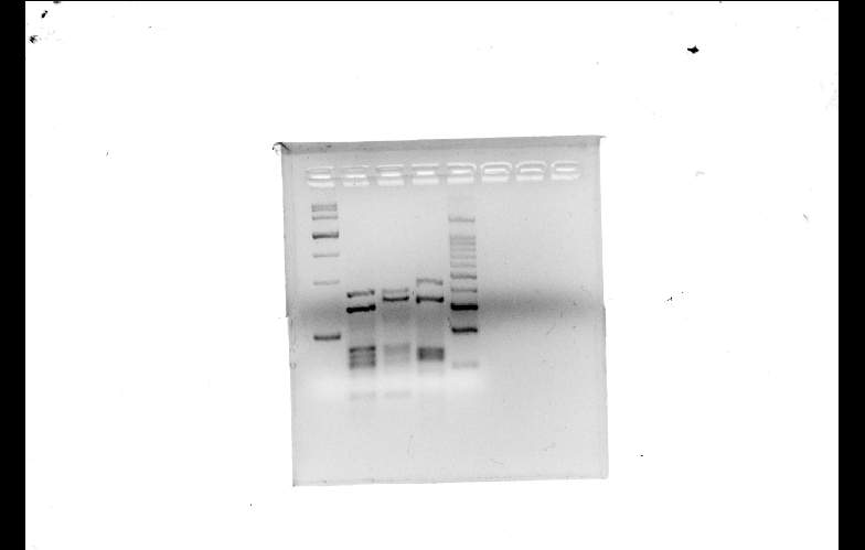 Msp I 和Hha I 双酶切后200bp下的挑带没有跑开 已有1人参与