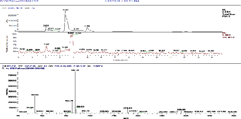 本人新手菜鸟一个,求高人分析质谱图!!ESI,正离子模式打的,测样的老师说负离子模式打不出东西来,但是打出来的跟我预想的分子没有一个能对上的!我做的是苯酚降解,产物可能有苯二酚,苯醌等,且样品里应该有未降解的苯酚才对,为什么连苯酚的分子离子峰都没有?哪里出了问题?求高人赐教!! clip_image002.gif clip_image003.gif |