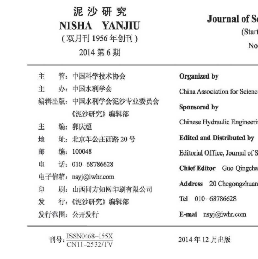 请教 泥沙研究(中文版) 期刊的投稿地址。 谢谢! |