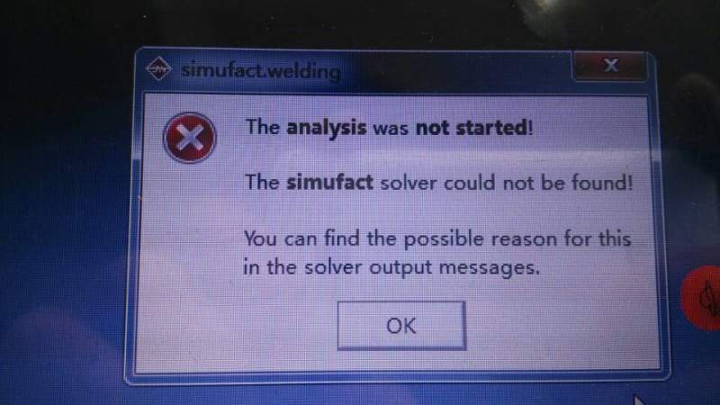 用simufact.welding做焊接模拟时,点击运行时显示下图,可我检查文件发现solver文件没有缺失呀?求大神指点