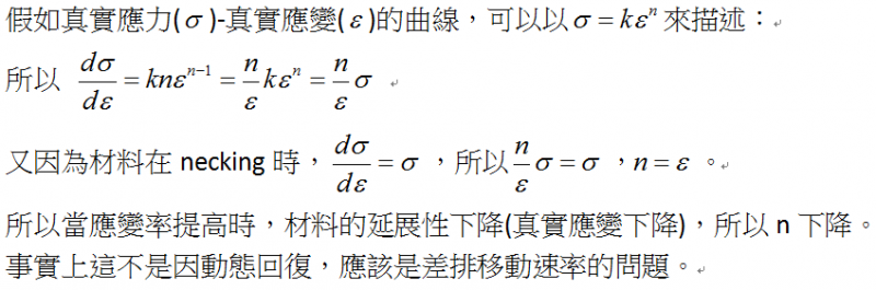| 在做快速拉伸的时候发现材料的应变硬化指数反而没有慢速拉伸时候的大,这是为什么呢?是因为动态回复么? |