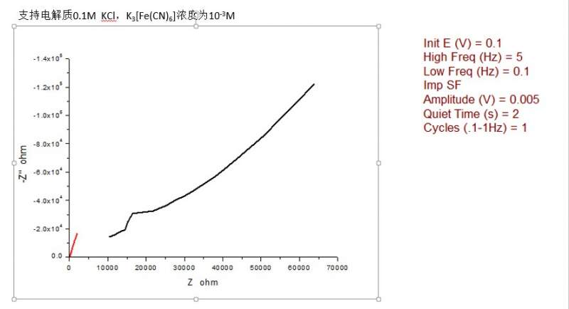 亲们,帮我看一下这个图是怎么回事,一样的条件,怎么线都不一样长?还有是不同材料的电极开路电压不一样,那么测试的时候就不用同一个开路电压是吗?红色的线是我自己做的电极,黑色的线是玻碳电极,谢谢啦! 阻抗图.jpg |