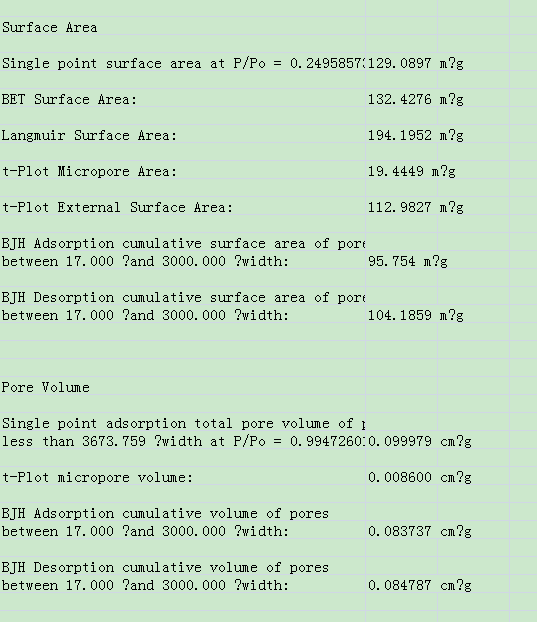 从吸附量和孔体积来看A的比表面积不可能有132,撑死了也就是个位数的大小。 出现这种原因,主要是吸附量太低,造成低压区吸附曲线异常,从而后处理得到的BET比表面积会出现异常,这是仪器测试的问题也可能是样品前处理或者样品量太少造成。具体的我还是要看下你的等温吸脱附曲线。 给你一个小技巧避免上述问题: 就是BET比表面积,对于介孔材料(或者非多孔材料),它的数值大概等于氮分压为0.3时的吸附量*3.1。 |