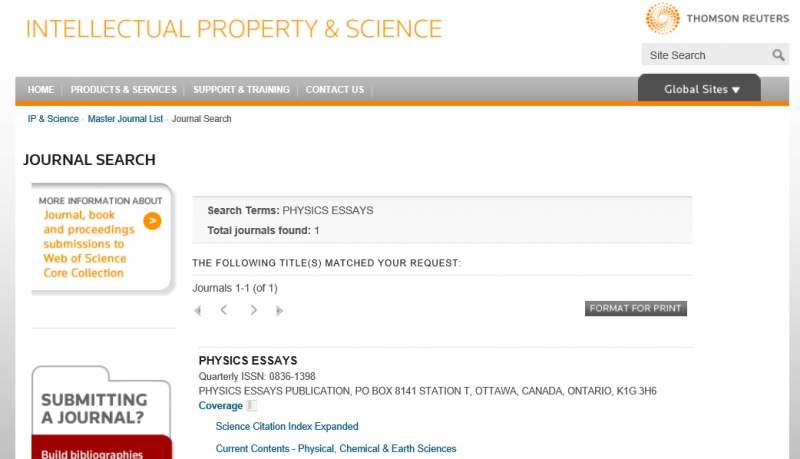 各位牛人,请问<<physics essays>>是SCI期刊么? http://physicsessays.org/about.html 官网上没有说是, 但http://ip-science.thomsonreuters.com/mjl/ Science Citation Index Expanded Source Publication中可以查到?web of science中只检索到2013年9月? 到底该期刊sci检索不? 恳请各位大牛扫盲,谢谢! ? [ Last edited by uestc006 on 2015-4-14 at 21:03 ] |