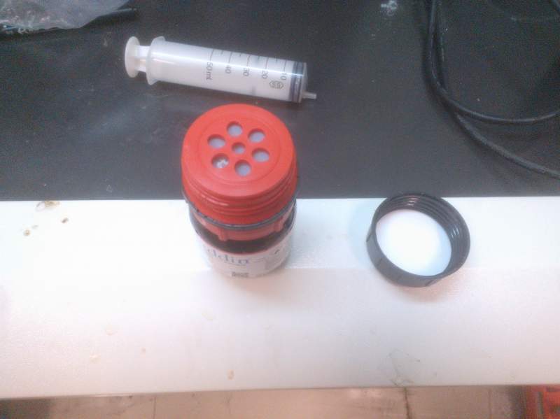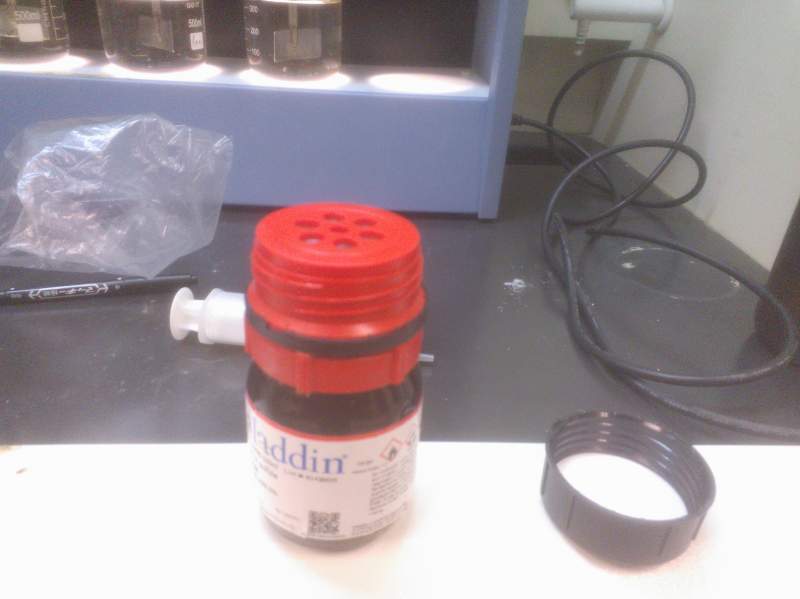 今天买了一瓶甲硫醚,可是居然打不开,也是醉了。试剂瓶上有两个盖子,黑色的那个可以打开,但是红色那个就拧不开了,红色的盖子下面有个灰色的垫片,实在是没有见过这样诡异的试剂瓶,求问有没有谁用过甲硫醚试剂?附图 WP_001411.jpg WP_001412.jpg WP_001413.jpg |