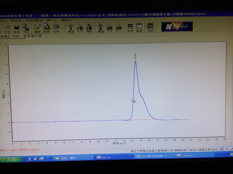 如题,由于误操作,新购SMA-钙基糖柱冲了一段时间的甲醇-水(80:20)。查资料后,用蒸馏水和EDTA-2Na溶液进行冲洗,但仍然柱效低,峰型如图 走的样品是D-甘露糖的水溶液 请教各位虫子如何挽回柱子或改善峰型? 色谱条件如下: 流动相是纯蒸馏水 柱温:80 色谱柱:SMA公司的ca基糖柱 检测器是岛津的RID-10A IMG_20150119_114726.jpg |