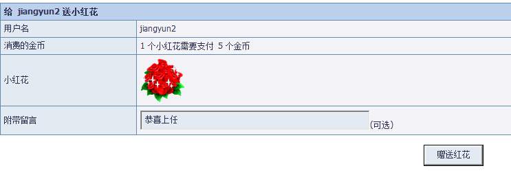 如题 @jiangyun2 欢迎荣版再次归来,热烈欢迎,送花的给出截图,将另有10BB奖励!! 注:送给我无效哈 送花地址:http://muchong.com/bbs/star.php?action=rate&uid=639367 |