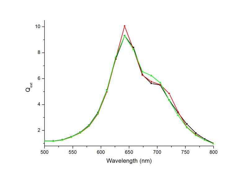 计算中空球时,构造了3个不同的形状文件,区别仅是球心位置不同,偶极子个数有差别,但3个方向都是对称的. 3个曲线中为什么峰值在长波长不一致,且不对称?是什么原因? 高手解答,谢谢! Graph1.JPG |