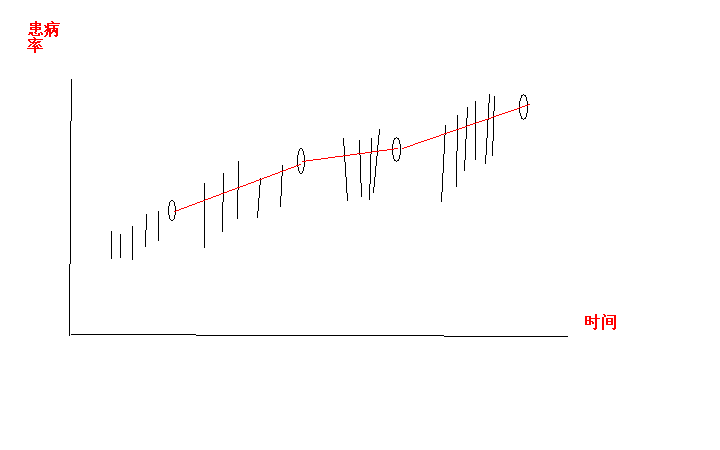 附件里是这个图,就是在meta分析时,怎么把每个研究的患病率和合成的患病率都展示在一个图里,把合成的患病率连接起来,看这个患病率的时间趋势图