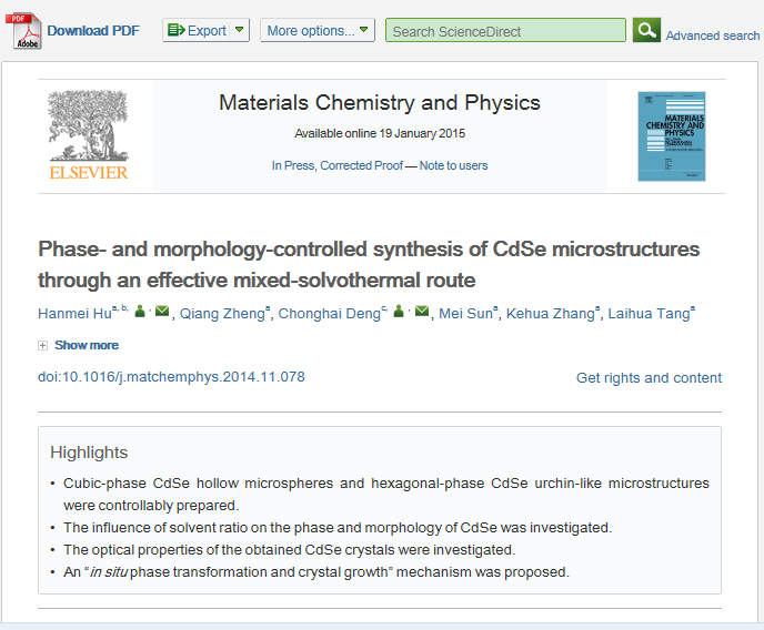 大家对Materials Chemistry and Physics 发表论文的看法及对论文评价