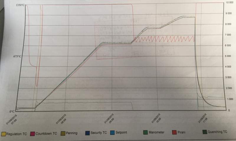 热处理用真空气淬炉 显示面板上面显示的英文参数是什么意思? 哪位大神给翻译一下 感谢~ Regulation TC Countdown TC Penning Security TC Setpoint Manometer Pirani Quenching TC (备注:每一项都对应一条曲线) |