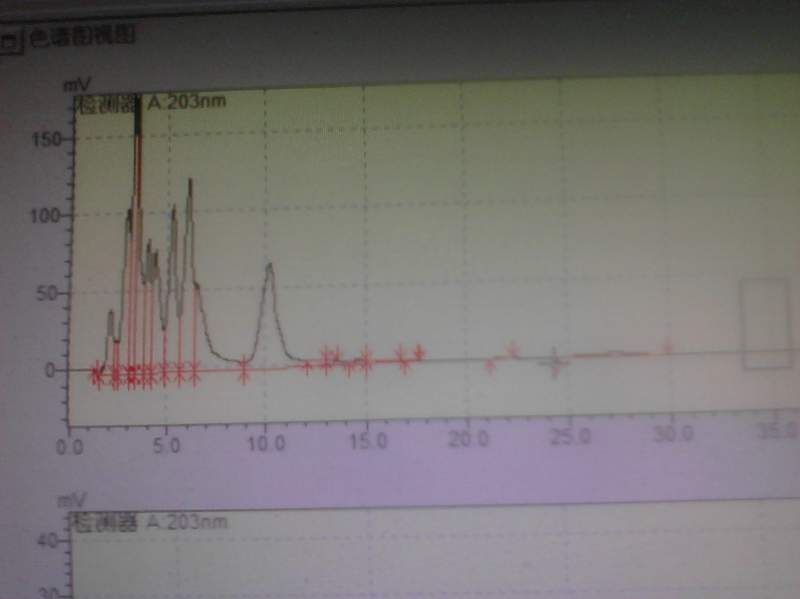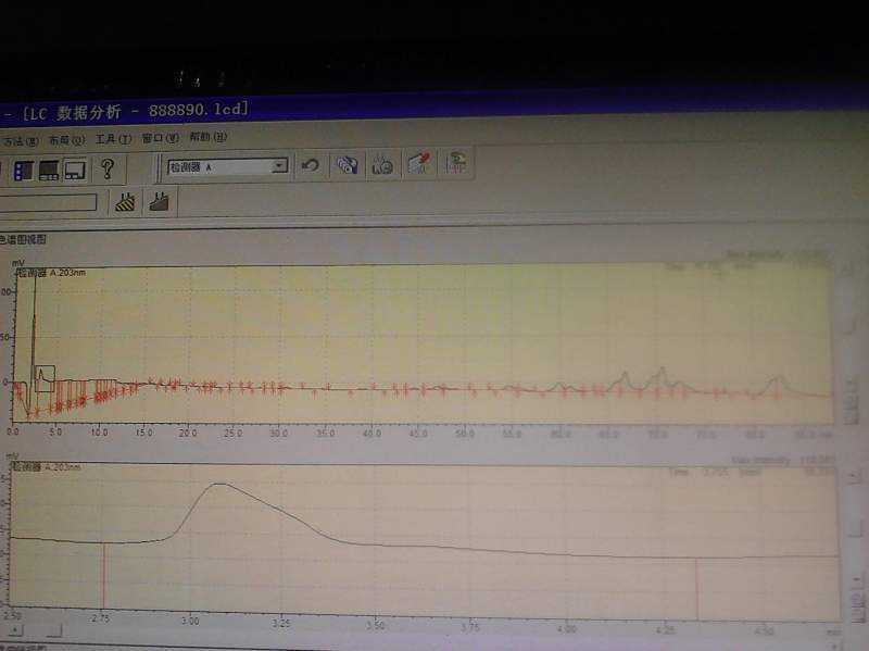 第一张照片是样品,第二张是甲醇溶剂。流动相是75乙腈和25水,203nm。峰与峰之间分不开,样品出峰这么快啊?求大神指导