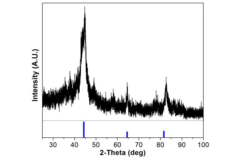 这是用微波等离子体尝试制备的Fe纳米粒子,是实验室第一次尝试做纳米材料,用Fe(CO)5分解生成的Fe纳米粒子。本人写了篇关于微波等离子体的文章,里面用到这幅图,审稿人对此有一个问题“标注衍射峰,并解释衍射强度较弱(不清晰)的原因”。我不是材料专业的,而且这个图是实验室师兄之前做的,我该如何回答?求做材料的前辈给些靠谱解答! |
