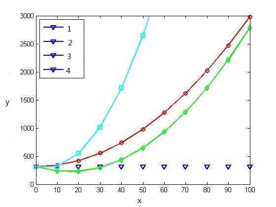 alpha_1=0.6; alpha_2=0.6; p_2=100; c=60; pai_0=30; beta_1=0.3; beta_2=0.7; a=0:10:100; yEES=((alpha_2).^2)*((p_2 -c).^2)./(2*(2*(alpha_2)-(alpha_1).^2 )) - pai_0; yECS=((alpha_2).^2)*((p_2 -c).^2)./(2*(2*(alpha_2)-(alpha_1).^2 )) + (5*(alpha_2)-2*((alpha_1).^2))*(((1-2*(beta_2))*a).^2)./(2*(alpha_2).*(2*(alpha_2)-((alpha_1).^2))) + (alpha_2)*(p_2 -c)*((1-2*(beta_2))*a)./(2*(alpha_2)-((alpha_1).^2)) - pai_0; yCES=((alpha_2).^2)*((p_2 -c).^2)./(2*(2*(alpha_2)-(alpha_1).^2 )) + (((1-2*(beta_1))*a).^2)./(alpha_2) - pai_0; yCCS=((alpha_2).^2)*((p_2 -c).^2)./(2*(2*(alpha_2)-(alpha_1).^2 )) + (5*(alpha_2)-2*((alpha_1).^2))*(((1-2*(beta_2))*a).^2)./(2*(alpha_2).*(2*(alpha_2)-(alpha_1).^2)) + (((1-2*(beta_1))*a).^2)./(alpha_2) + (alpha_2)*(p_2 -c)*(1-2*(beta_2))*a./(2*(alpha_2)-(alpha_1).^2 ) - (2*(1-2*(beta_2)).*a.*(1-2*(beta_1)).*a)./(alpha_2) - pai_0; plot(a,yEES,'b-v',a,yECS,'g-d',a,yCES,'r-o',a,yCCS,'c-s','LineWidth',1.5) xlabel('a') ylabel('the profit of the operator') legend('\pi^{\it EES}_{\it m}','\pi^{\it ECS}_{\it m}','\pi^{\it CES}_{\it m}','\pi^{\it CCS}_{\it m}',2) axis([0,100,0,3000]) |