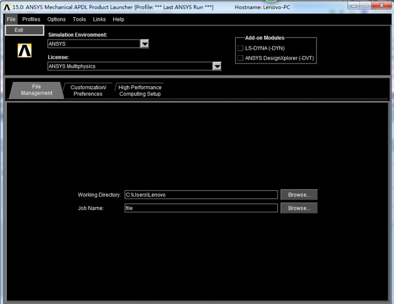 ANSYS安装后File下只有exit,怎么新建一个文件啊