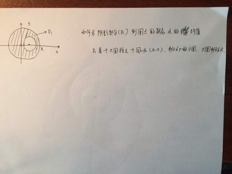 已知一个圆心为(0,0)的大圆,半径为R,里面包含了一个圆心为(a,0)的小圆,半径为r,请问一下怎么求大圆挖掉小圆那部分区域到原点(0,0)的距离的均值