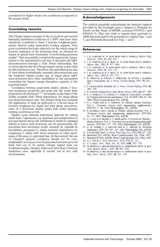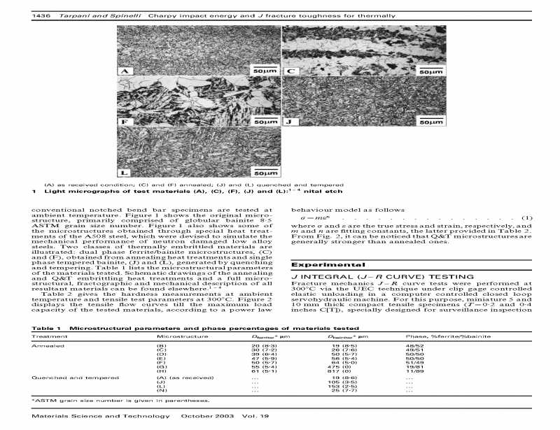 最近在做一种高强钢的断裂韧性的实验,但是沿壁厚方向上的某些位置似乎很脆,本人使用的是单试样卸载柔度法测断裂韧性,试样为标准的CT试样,有两个位置的常温的断裂韧度JIC值实在测不出来,载荷循环了5次左右试样就发生脆断了,其它位置的断裂韧度测试没有问题。 现在我手上有相应位置的材料的冲击载荷实验的数据,那两个位置的试样的冲击功确实是小一些的,不知道我在论文中可否借用冲击功来说明一下这两个位置的太脆,得出其断裂韧度值应该是很小的,这样的结论呢?另外,我觉得冲击韧性和断裂韧性都是表征材料的韧性的度量方式,不知道这种观点是否成立? |