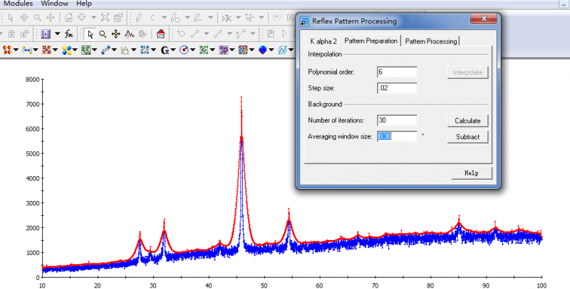 各位大神: 本人刚学习material studio6 有问题向大神们请教,我的 XRD图谱修背底时遇到如下问题,还望帮忙解决。附图三张和XRD图谱文件 这是XRD原图.png 这是扣背底的显示图.png 这是扣完背底的结果图.png |