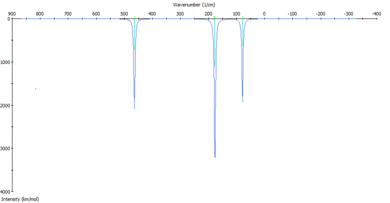 虫友们,最近我在用MS计算红外光谱,得到了下面这幅图,刚接触模拟好多不懂,我想问下,为什么得到的光谱图纵坐标是强度,而实验得到的是透过率呢?非常感谢!
