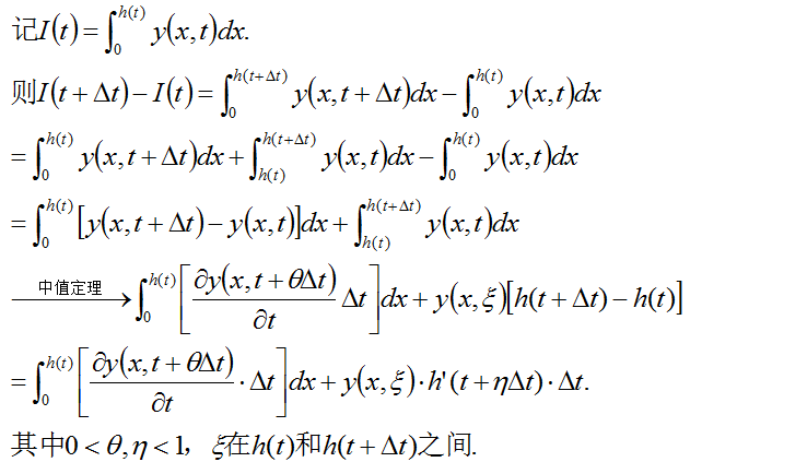 前提条件是y(x,t)连续,有关于t的连续偏导数;h(t)有连续的导函数。