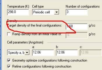 用ms弄个RDX的box,在amorphous cell中,如下图标记的设置是什么意思,这个密度设定好了下面的晶胞参数也就确定了?