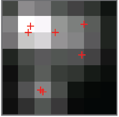 恩,谢谢您的回答,这个是我的例子,按照这个方法试了,好像没什么变化,我看链接中给的例子,例子中的矩阵生成的图就已经是渐变的了,然后又做的改变,我现在还没有得到这个矩阵,我想要的是在图中这四个点周围有个渐变的变化(两个点距离很近的话,这一片就是亮的),但是我现在的是只有两个像素值。