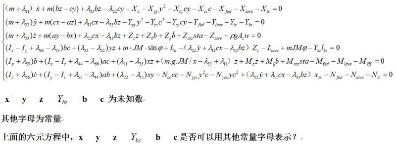 上面的六元方程中,x y z b c是否可以用其他常量字母表示?