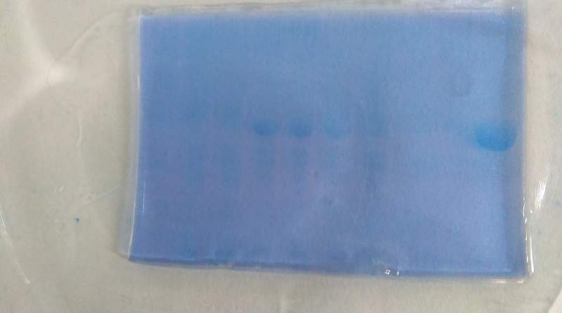 考马斯亮蓝如过实验室条件允许,不要重复使用,况且配置很容易,建议自己有一份。 我的实验方式, 考染 5 min- 10 min, 基本可以做到完全染色(一定用首次配置溶液)。 现配脱色液脱色 -- 半小时脱色-- 换脱色液--- 脱色2小时, 这时候基本应该脱色完全,胶应该呈现透明状,如果还有杂背景,继续脱1-2小时。 需要注意的是: 染色液和脱色液均含有易挥发的甲醇和乙酸,一旦放置时间过长,就失去效果。 |