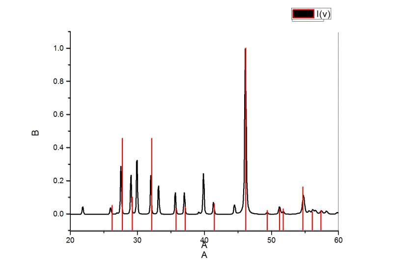 各位大神: 我用material studio6.0搭建模型,然后生成XRD图谱,与Jade5中标准卡片比对,其中黑色波浪线为模型生成的XRD图谱,红色竖直线为标准卡片线,这样比对后,不知道我的模型是否建立正确,可以用么?如图所示 0.jpg |