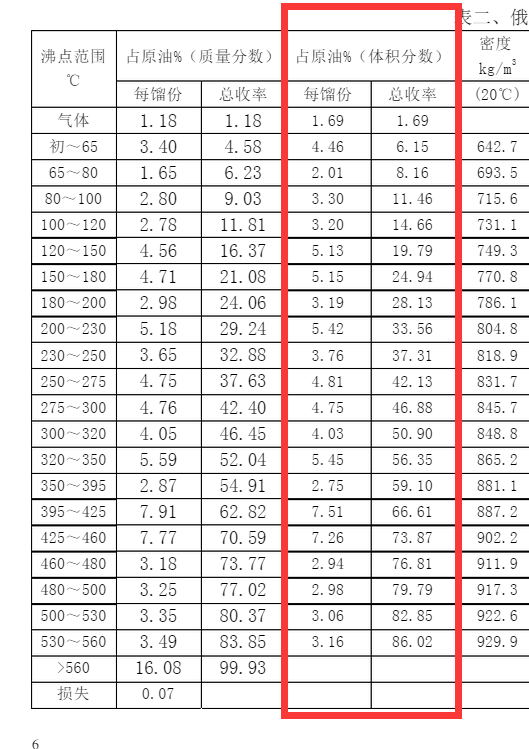 炼厂多采用的是恩氏蒸馏数据和你这个实沸点蒸馏曲线有点不同, 一般是10%-95%对应一个温度,主要是对油品的组成做一大致的判断! 比如汽油的10%镏出温度是表示汽油的启动性能,50%表示加速性能。。。。。。 还有你表一和表二的原油是一个吗? 怎么和你给出链接的数据对不上啊? |