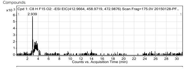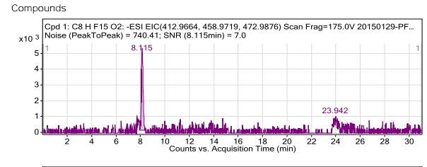 PFOA样品出峰时间和标样出峰时间相差7分钟?