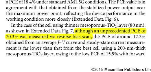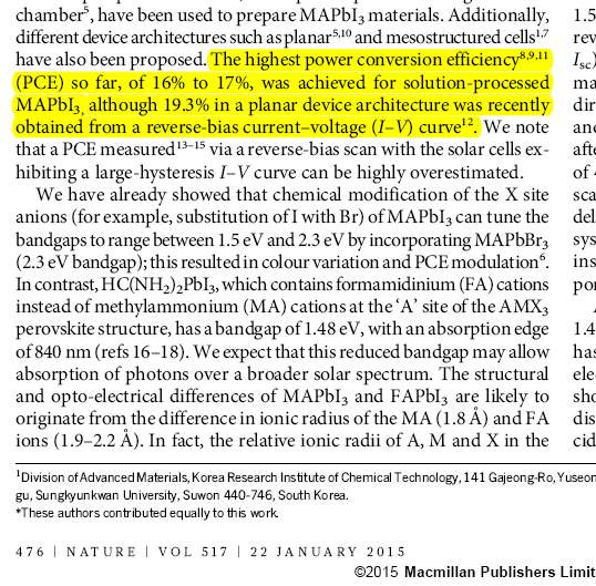 2015- 韩国KRICT20.3%钙钛矿太阳能电池