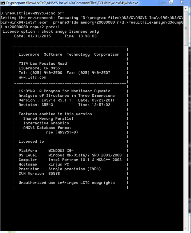 请教各位,本人在做ANSYS LSDYNA时,因为算的时间太久,就按照简单重启动的方法停止了运算,但是,当重启动时,出现以下问题。我看了下好像是说没有授权证书。不知道是不是这样 1.PNG 2.PNG |